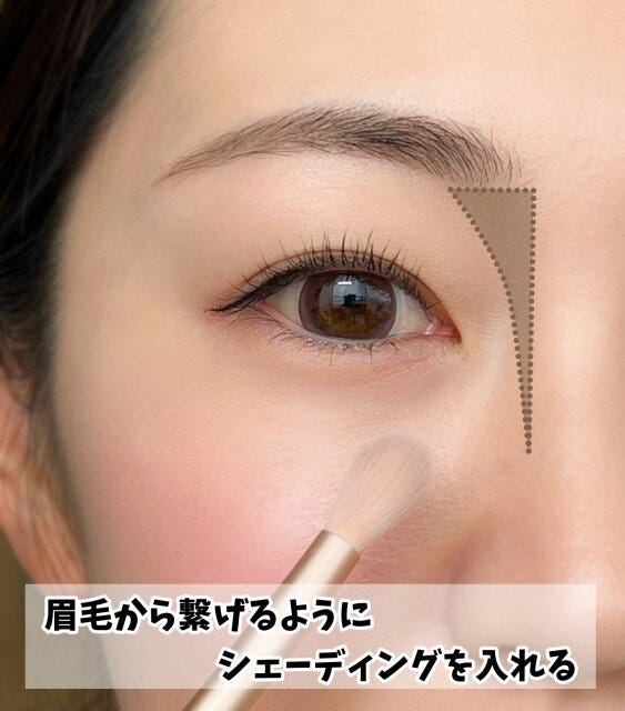眉頭から繋がるようにノーズシャドウを入れてあげると、目鼻立ちがよりハッキリして立体的に見えるんです。