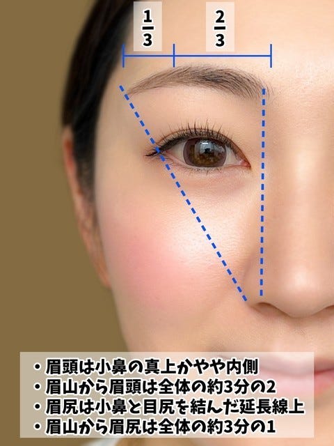 黄金比を頭に入れておくだけでも、眉の形がキレイに仕上がりやすくますよ!