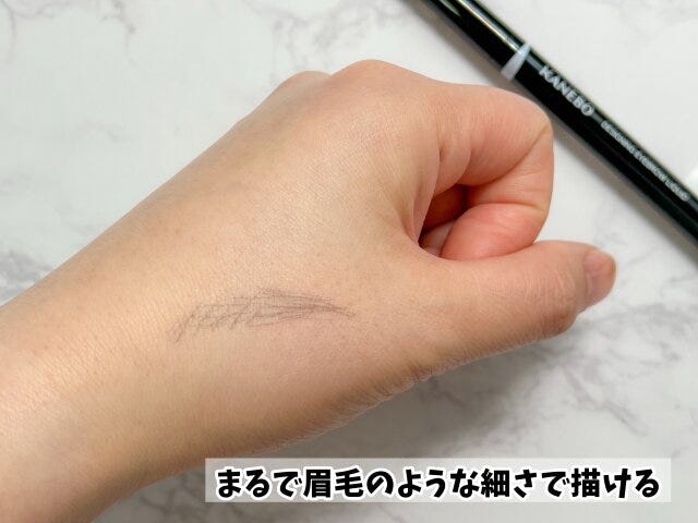 本物の毛のように見えますよね!1本ずつ描くように眉に描き足してあげるとより自然な仕上がりになります。眉尻の毛が少ない部分に描いてみましょう。