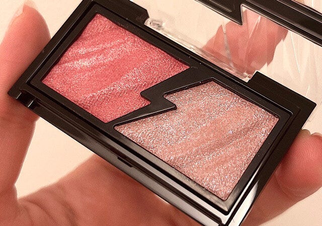 ただ、青みが強く彩度も高いので、濃く馴染ませるとかなりバブリーな仕上がりに。ベタ塗り感のある重いメイクになりがちです。それを避けるために、あえて高発色なアイシャドウは選ばず、発色が穏やかなアイテムを選ぶのがおすすめです。