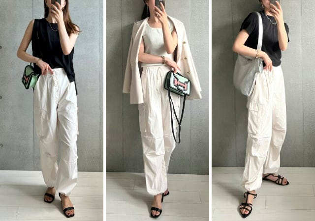 中でもmichill編集部のおすすめはこちらのパラシュートカーゴパンツ!あわせるトップスによってカジュアルにもキレイめにも着られる万能パンツです。