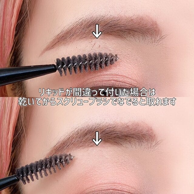 眉の毛にも液をつけておくとカラーのニュアンスが加わるのでアイブロウマスカラなしでも仕上げられます。地肌につかないようにだけ注意しましょう。