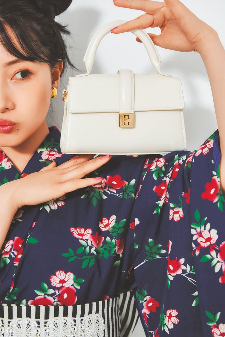 あえての今どきバッグでMIX感を♡ シンプルなデザインだから柄浴衣とあわせやすい。