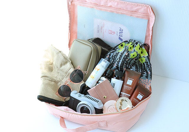 旅行の必需品をひとまとめにして、トラベルポーチとして…コスメやスキンケアグッズを入れて、コスメポーチとして…などなど仕切りがなく自由な使い方ができるんです。