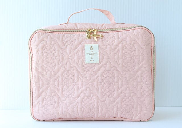 旅行にも持っていける大容量のポーチというと見た目がシンプルなものが多いですが、可愛いデザインでバッグ感覚で持ってもコーデに馴染みやすいのもポイント♡