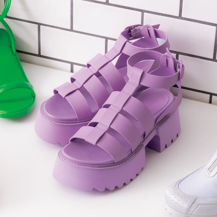 存在感ありまくりなBIGシューズで美脚見せを狙える。鮮やかなパープルで華やかに仕上げて!