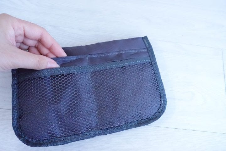そして上から見ると、ファスナー付きのポケットもありました。全部でなんと11ポケット!ポケットがたくさんあるから、その分厚みもあってしっかりと自立します。