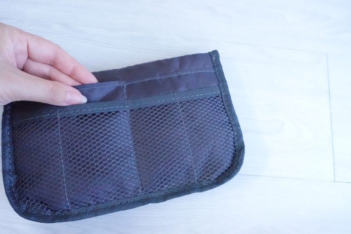以前購入した黒のバッグインバッグに比べるとかなりしっかりしているのとポケットの数が増えています。それでは実際に収納してみましょう!