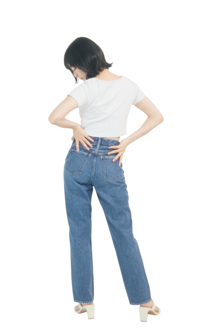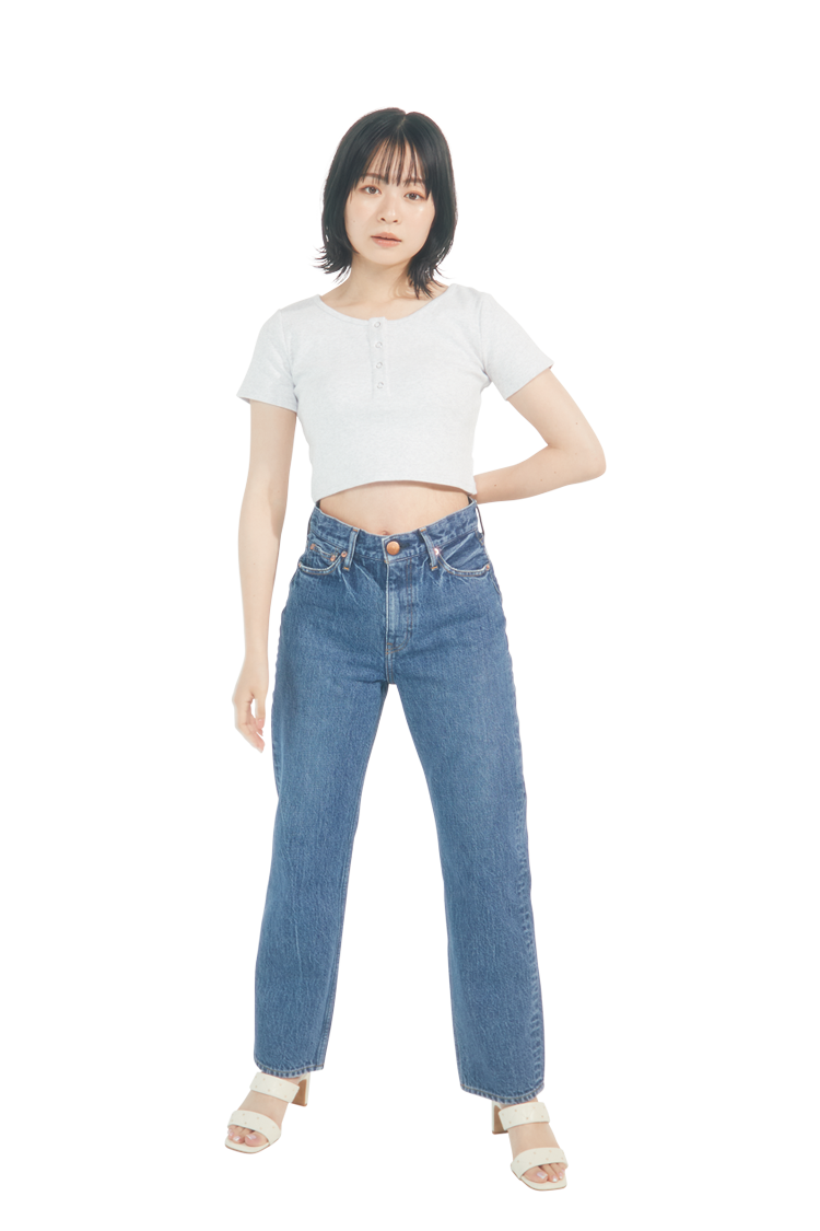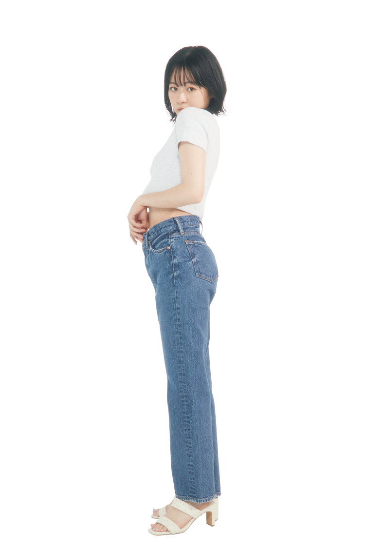 太ももからすそまでの太さが同じで、まっすぐなシルエットが特徴。デニムの中でも王道の型で、細すぎず太すぎずなので、ややゆったりとはける。