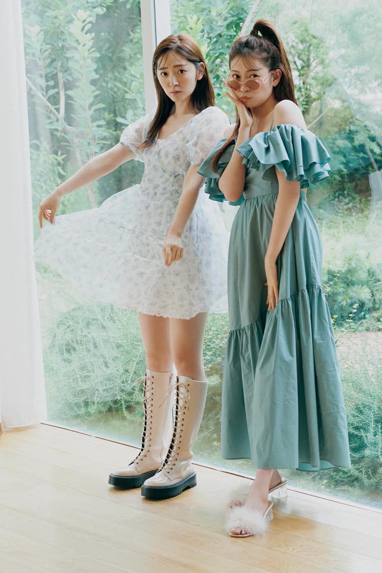 撮影/三瓶康友 スタイリング/城田望(KIND) ヘア&メイク/Mien(Lila) モデル/鈴木愛理、吉田朱里(ともに本誌専属) 文/小田和希子