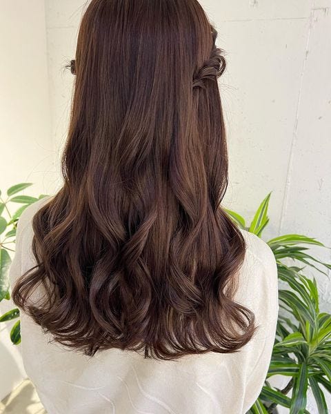日本人女性と肌馴染みもよく、透明感も兼ね備えているトレンドヘアカラーは、エレガントなロングの髪型に似合います。