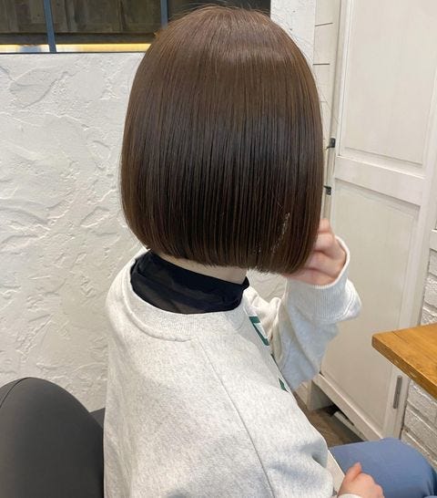 シンプルなボブスタイルに合わせると、髪のツヤ感がよりアップします。