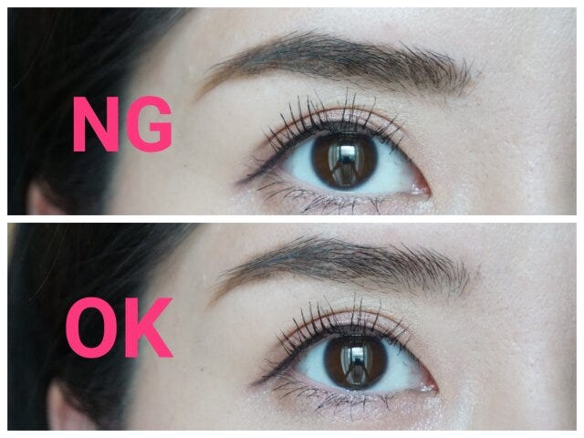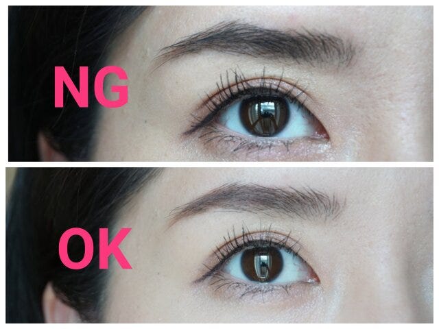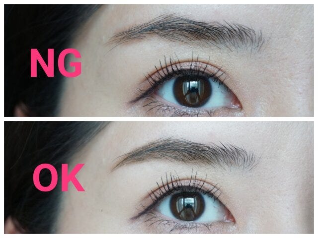 特に、黒髪の人や毛が太い人は、眉マスカラで色を和らげると、瞳が際立って目がくりっと大きく見えます。