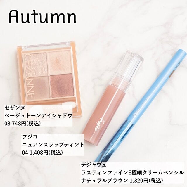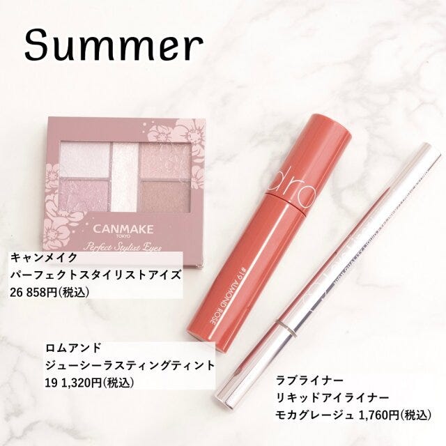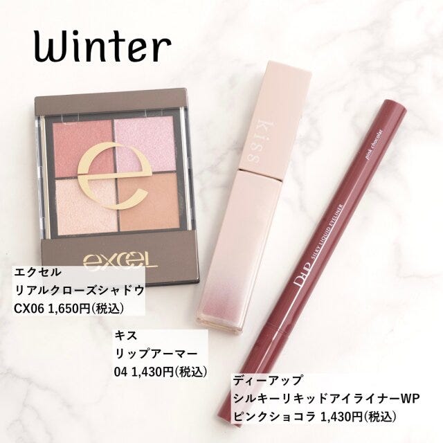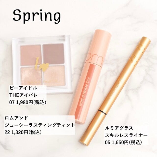 今回ご紹介する4シーズンの中でこちらが最も低価格で揃えられるメイクレシピですが、そう感じられないほどどれもクオリティの高いアイテムです!
