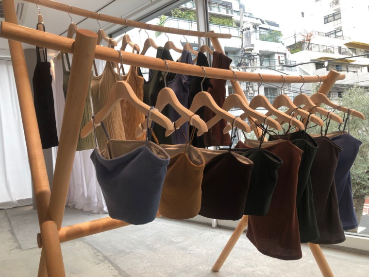 同ブランドの原点は、ワコールが戦後の和装から洋装に変わる流れの中で、女性に服をきれいに着こなしてもらうためにブラパッドを扱い始めた創業時の精神とする。イベント会場には、その趣旨とともに実物のブラパッドも展示された。中心アイテムとなるのはカップインウェアで、ワコール独自のカップを服と一体化することで美しいルックとボディーラインを実現する。ショートキャミソール(税込み1万3200円)、ツーウェーキャミソール、Tシャツ、リブタンクトップの4種類を販売し、10、11月には長袖を追加発売する予定だ。