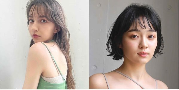 カットベースは、肩上のボブ。トップにレイヤーを入れ、軽さを出します。顔まわりに長めのおくれ毛をつくることで、抜け感スタイルに。また、前髪はウザバングのシースルーで今っぽく。