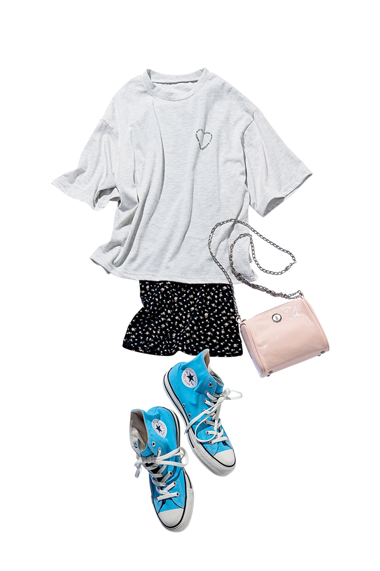 ロゴTシャツ 1,399円/GRL ぴたぴたワンピース 7,980円/épine ピンクチェーンバッグ 39,100円/minitmute(スクリーンショット)ブルースニーカー 8,250円/コンバース Scene3 レイくんにおすすめされた海外ドラマが泣ける!