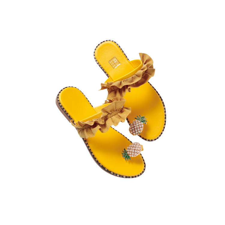 イエローパイナップルサンダル(1.8) 1,379円/SHEIN ※( )内の数字は、バッグはタテ×ヨコ×マチ、靴はヒールの高さで、単位はcmです(編集部調べ)。