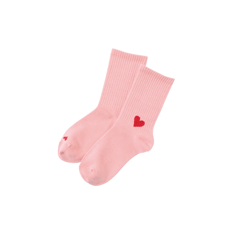 コーデの差し色にも使えるピンク靴下。ワンポイントのちっちゃなハートにきゅんとしちゃう♡