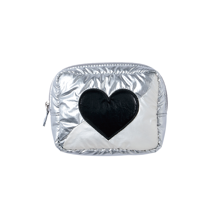 大きなハートもモノトーンで甘さ控えめに。どんな場面にも使えるポーチは乙女の必須アイテム!