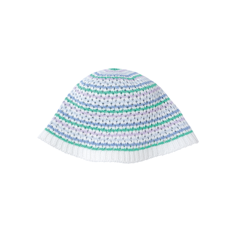 夏らしい寒色グラデがさわやか〜。クロシェ編みでクラフト感のある印象に。