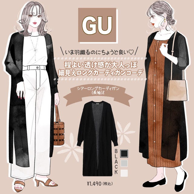 ちょっと足したい!程よいシアー感が大人っぽいGUロングカーディガン