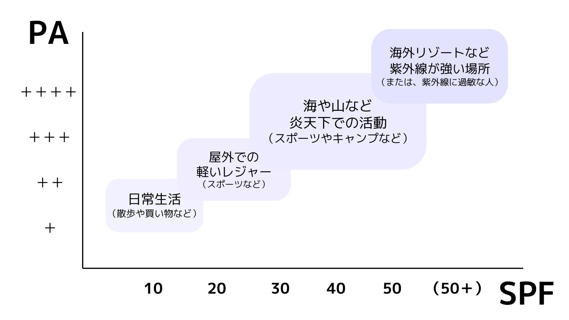 「どのくらいの時間、どのような場所で紫外線を浴びるか」をしっかりと考えたうえで、TPOにあった日焼け止めを選ぶことが大切です。