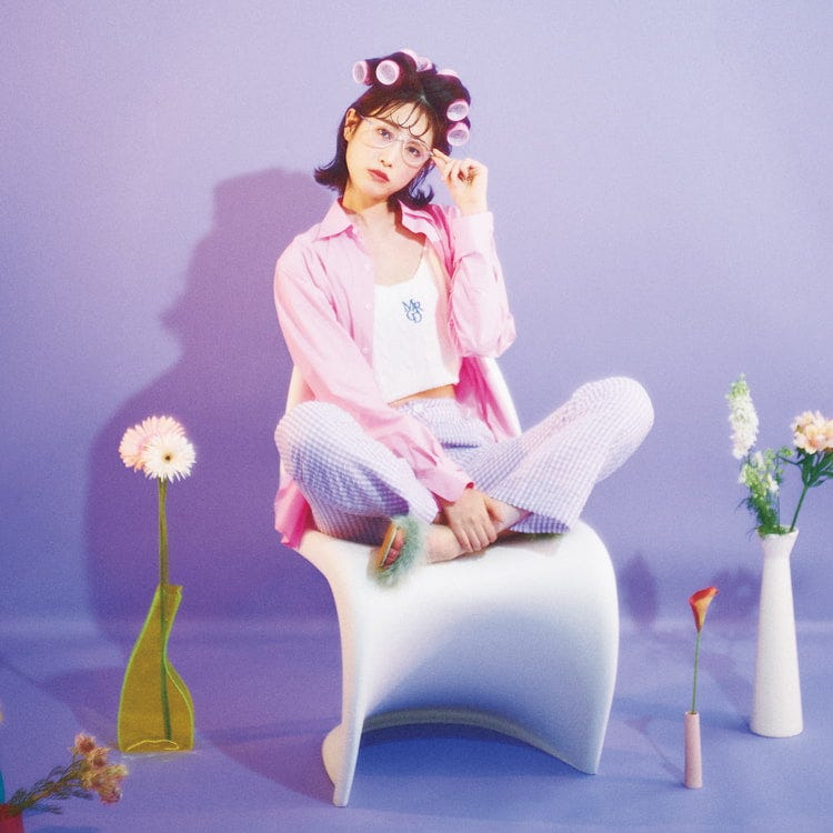 ピンクシャツ 12,500円、白ニットビスチェ 11,000円/ともにMardi Mercredi(MUSINSA JAPAN) チェックパンツ 4,399円/W♥C めがね 20,900円/Double Lovers(スクリーンショット) サンダル 4,700円/MORE self LOVE ピンクフリルブラウス