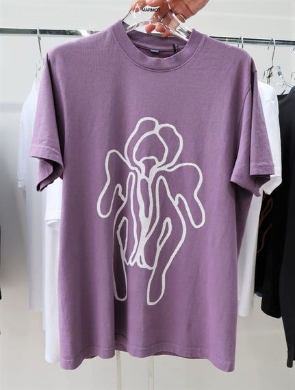 着心地が楽で、便利に使えるから家の中でも外でも気づいたらずっと着ている。そんな服を目指しています。春夏はSNSでつながりのあるアーティストに依頼し、Tシャツのグラフィックを作成してもらいました。ぱっと見て何だろうと思って目を凝らすと花や人の顔だとわかる、ユーモラスな作品です。