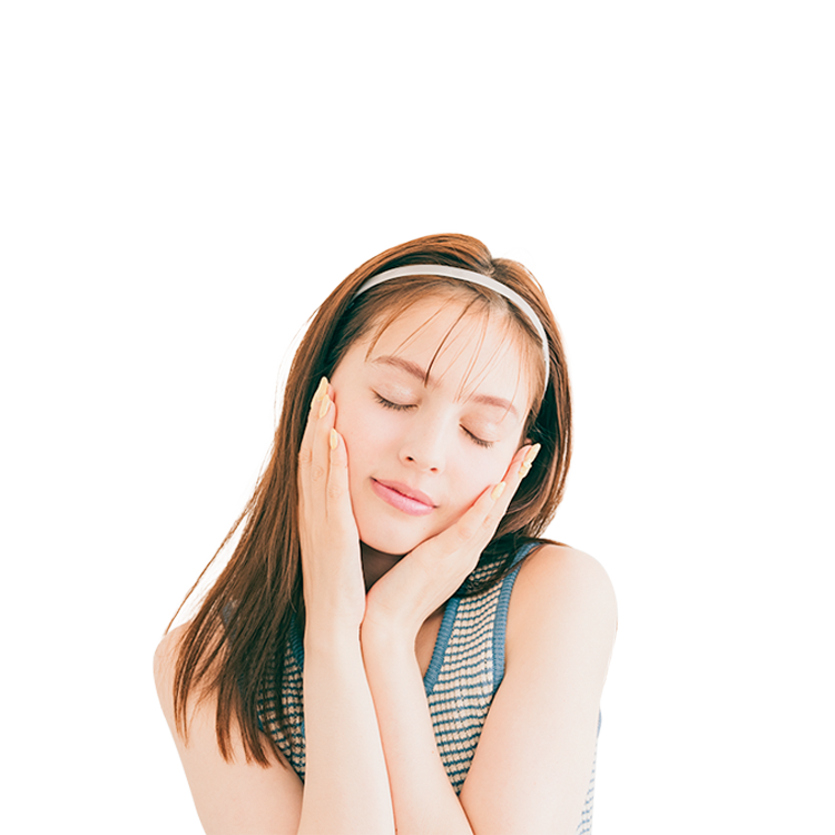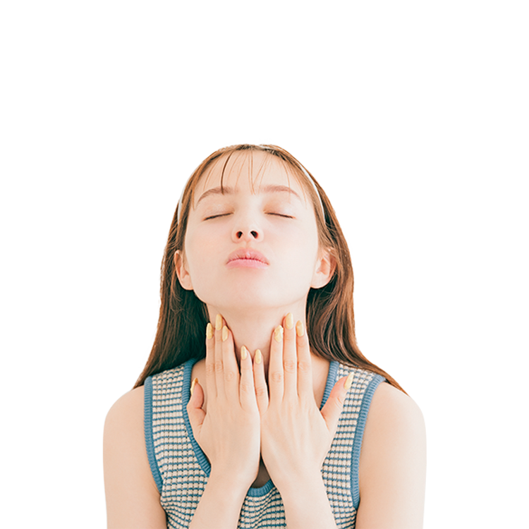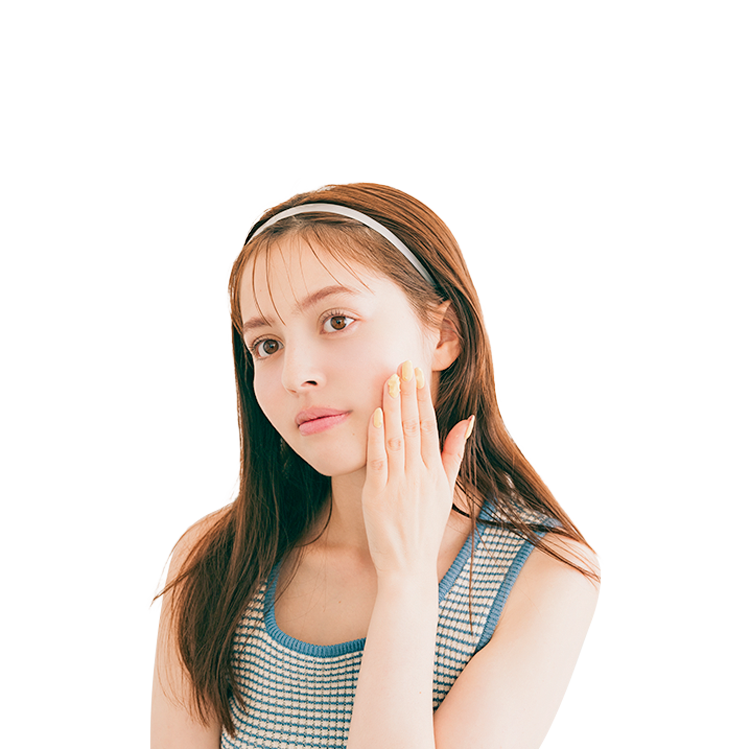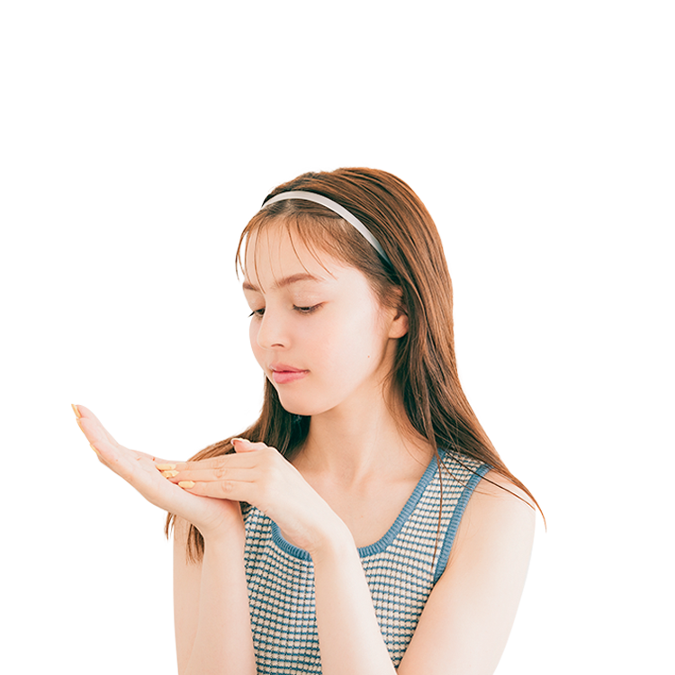 コットンパックで与えた水分を、ハンドプレスでやさしく肌にしっかりなじませる。コットンに余った化粧水は、首までのばして。