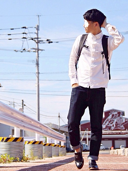 彼▷長袖白シャツ