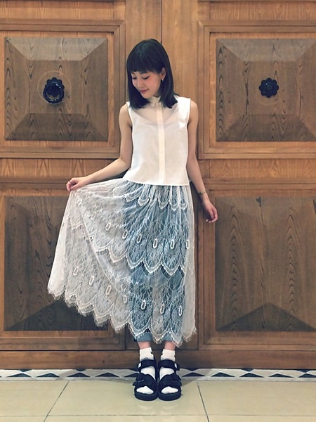 今年流行りの透けスカートと