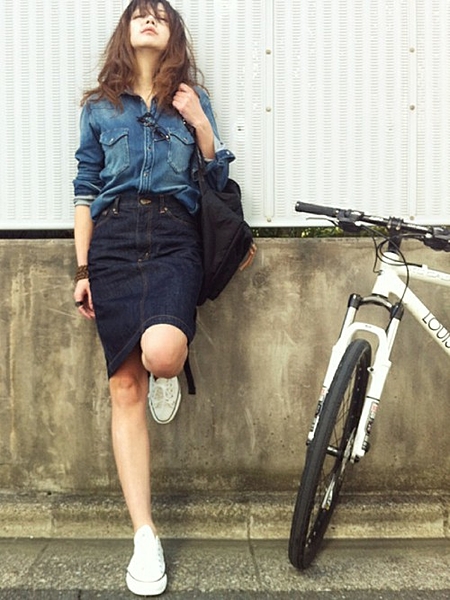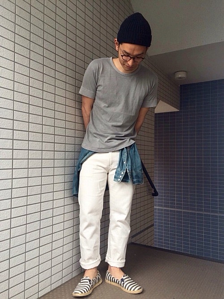 デニムシャツにホワイトデニム!