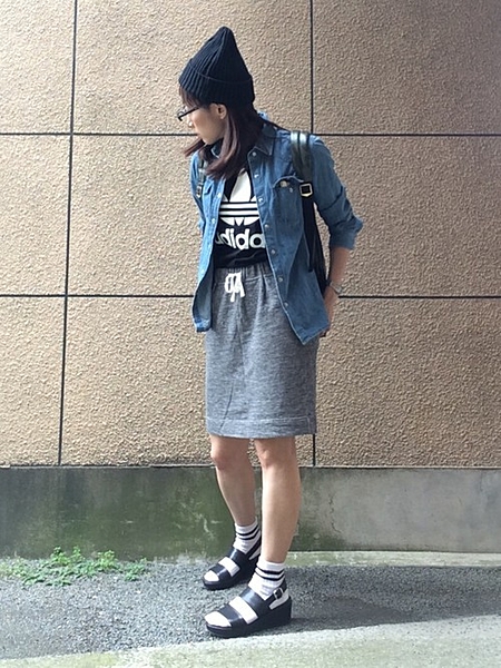羽織りとしてスウェットスカートと