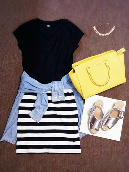 ボーダーにデニムシャツという