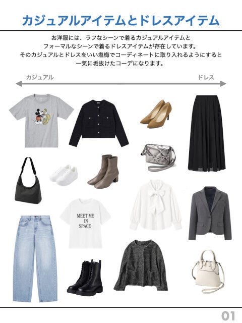 カジュアルアイテムとドレスアイテム