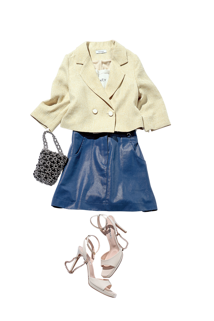 Item 着回すアイテムはこちら! イエローセットアップ ツイードもサマー素材だから重くならない。単品でもセットでもクラシカルに決まる♡ イエローセットアップ 各14,960円/RANDA Coordinate1 セットで決める楽ちんコーデ セットアップで手軽にコーデを仕上げる。上品な小物あわせできれいめな雰囲気に♡ セットアップは着回し。イヤリング 9,870円/アビステ デニムキルティ