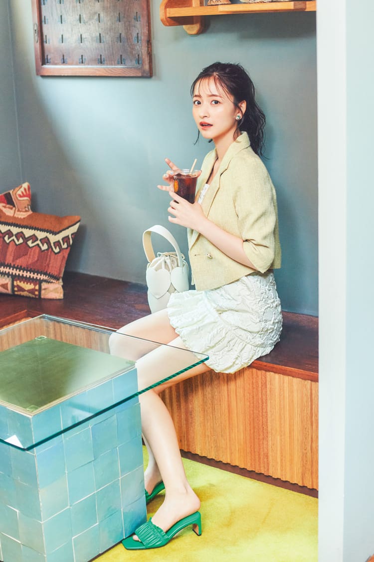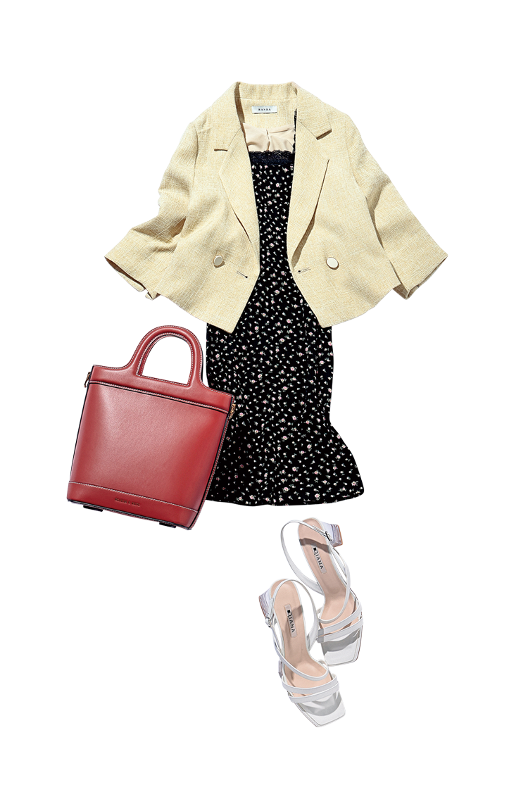 セットアップは着回し。ぴたぴたワンピース 7,980円/épine ブラウンバッグ 12,900円/チャールズ&キース(チャールズ&キース ジャパン) クリアヒール白サンダル 18,700円/ダイアナ(ダイアナ 銀座本店) 撮影/女鹿成二(モデル)、上田祐輝(静物) スタイリング/稲葉有理奈(KIND) ヘア&メイク/サイオチアキ(Lila) モデル/金川紗耶(本誌専属) 文/柿沼奈々子