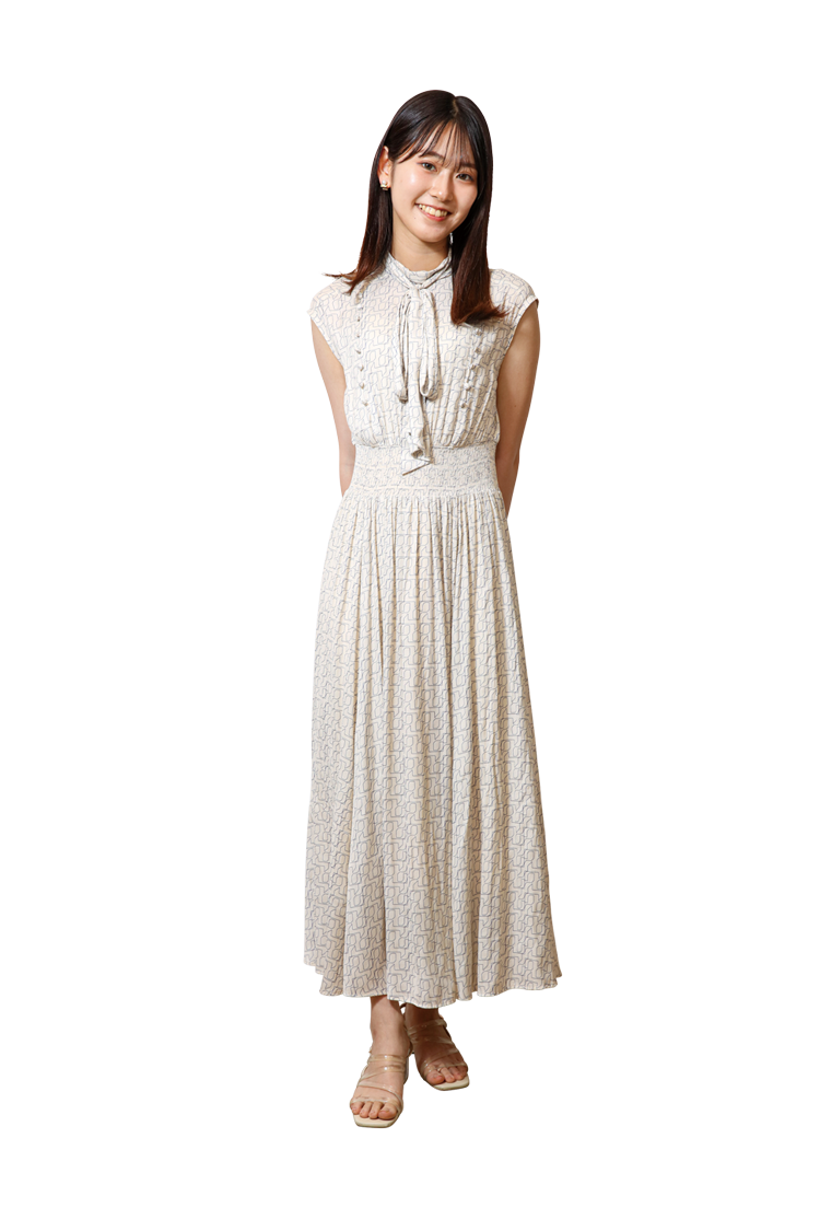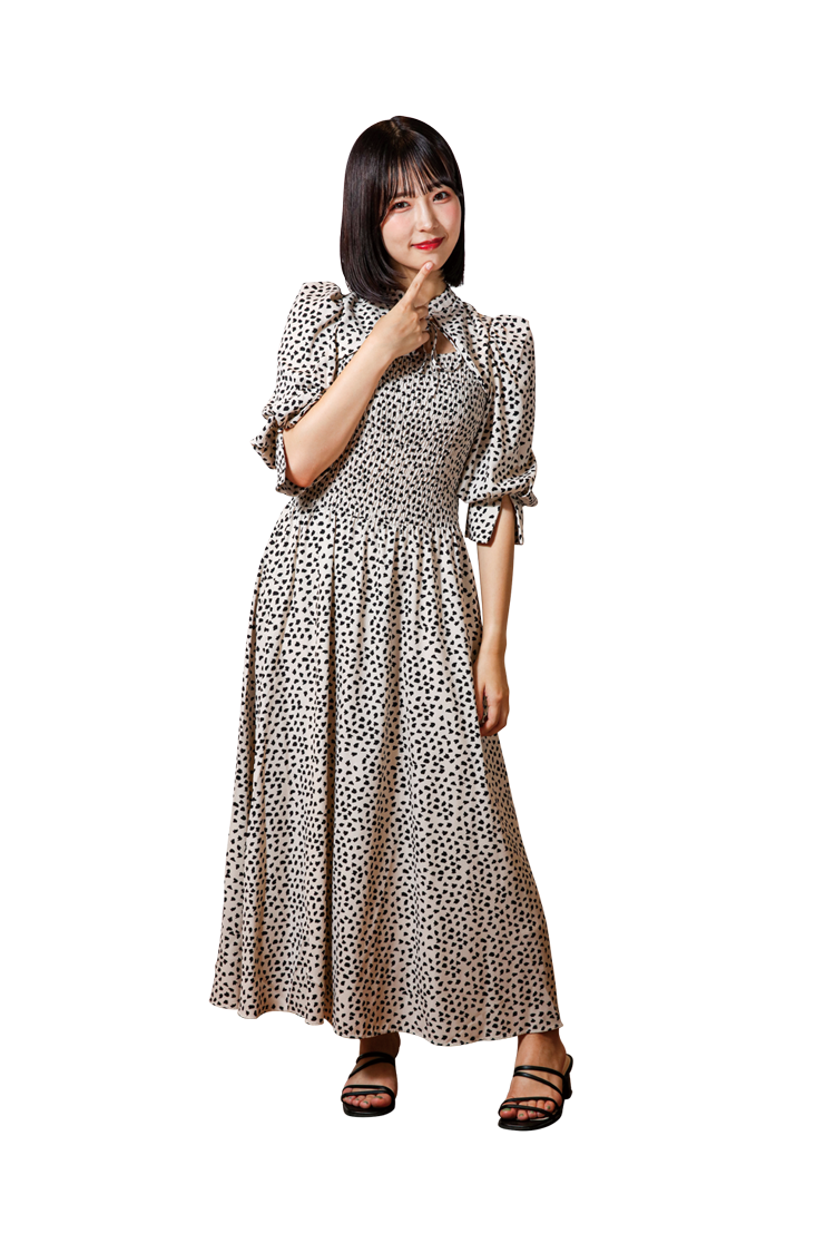 白を基調としたドット柄のワンピースをセレクト。上半身がタイトな作りのメリハリのあるデザインなので、スタイルアップが狙えます!上品さと肌見せのバランスがいいのがお気に入りです♡