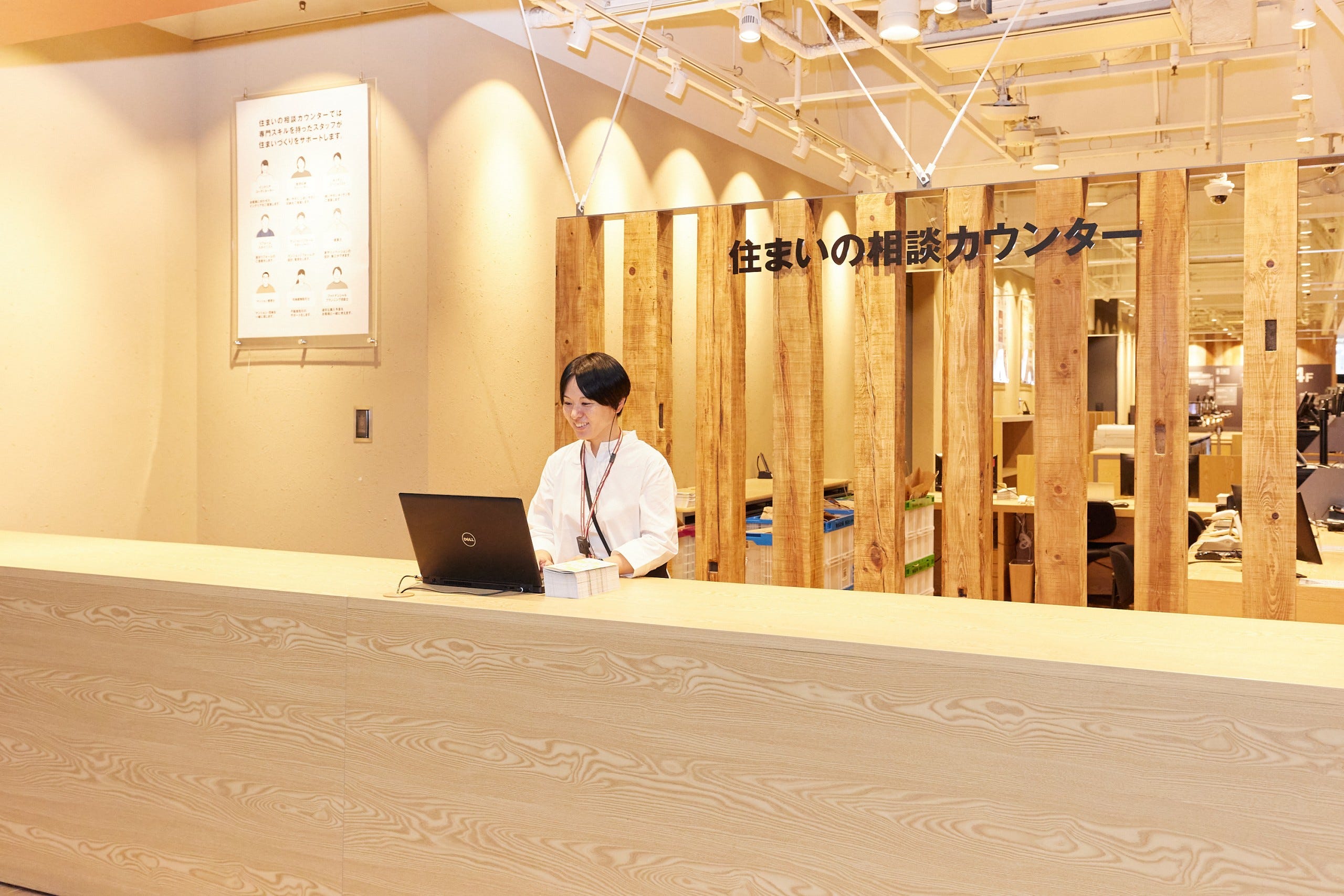 相談窓口として「住まいの相談カウンター」を新たに設置し、戸建て販売、マンションリノベーション、部分リフォームなどの住まいの相談から、インテリアプランニング、収納計画、引越し、模様替え、片付けなど、暮らしにまつわる相談まで、ワンストップで相談ができるようになりました。