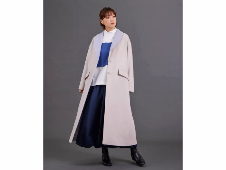 協業企画はトゥイカウリのアップサイクルドレス企画をベースに、スーペリアクローゼットのテイストを加えてデザインしたコート、ブラウス、スカートの3アイテム。協業企画は取引先のテキスタイルメーカーが同じだったことから、相互に服作りに対する親和性を感じたことがきっかけ。女性らしく丸みのあるシルエットを盛り込んだロングコート(税込み7万5900円)、オーバーシルエットの白ベースのツートンカラーのブラウス(3万1900円)、ふわっと広がるフレアスカート(3万5200円)。