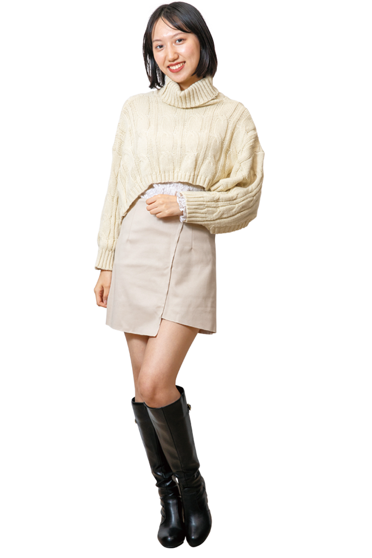 セットのホワイトコーデは17㎏でコスパも◎。クロップド丈のニットなのでウエストがほっそり見えます♡