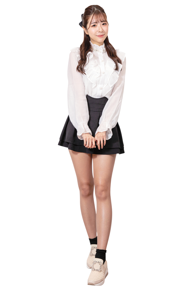 こってり甘いトップスはELLE&CHICで。えり元のビジューや大きなフリルがポイント!
