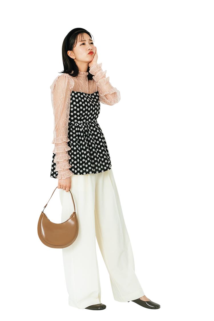 レースブラウス 18,700円/HONEY MI HONEY 花柄キャミトップス 12,100円/The Girls Society ハイウエストパンツ 8,800円/ STYLEMIXER(バロックジャパンリミテッド) カチューシャ 2,750円/ROSE BUD(ROSE BUD ルミネエスト新宿店) バッグ 5,990円/MANGO(LOCONDO) パンプス 8,900円/チャールズ&キース(チャールズ&キース ジャパン) Scene4 渡韓中、行きたい場所が多すぎて話が止まらない♡