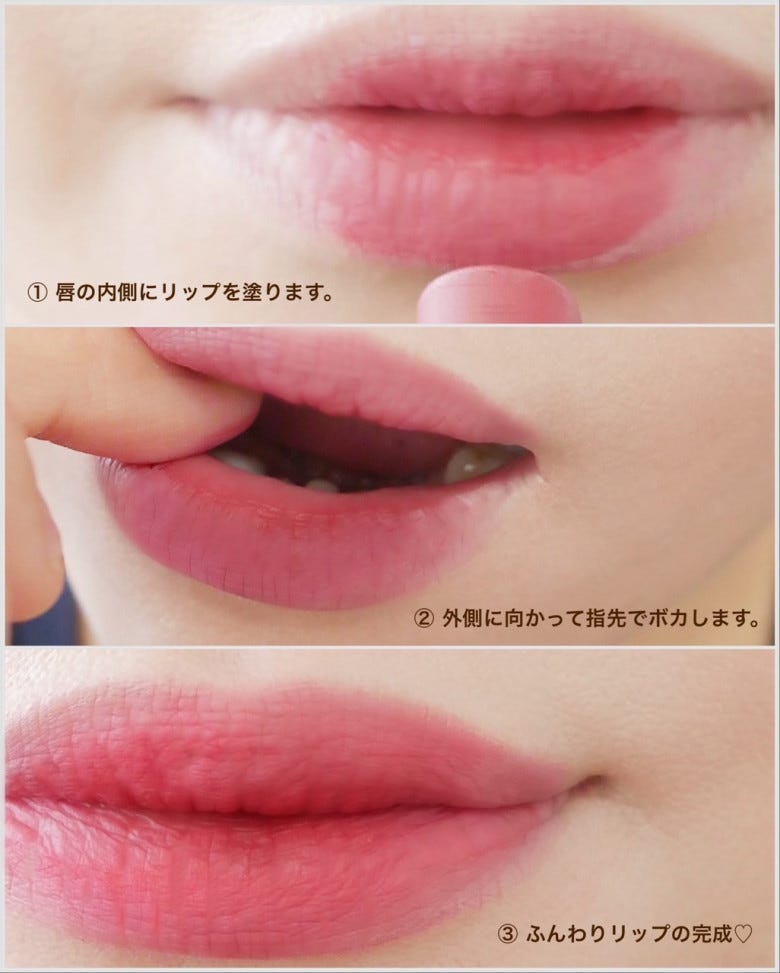 例えば指先を使って輪郭をボカす”ポンポン塗り”すれば、抜け感のある唇に仕上がります。きっちり塗るのもよし、指でぼかすのもよし、ぜひ試してみて!