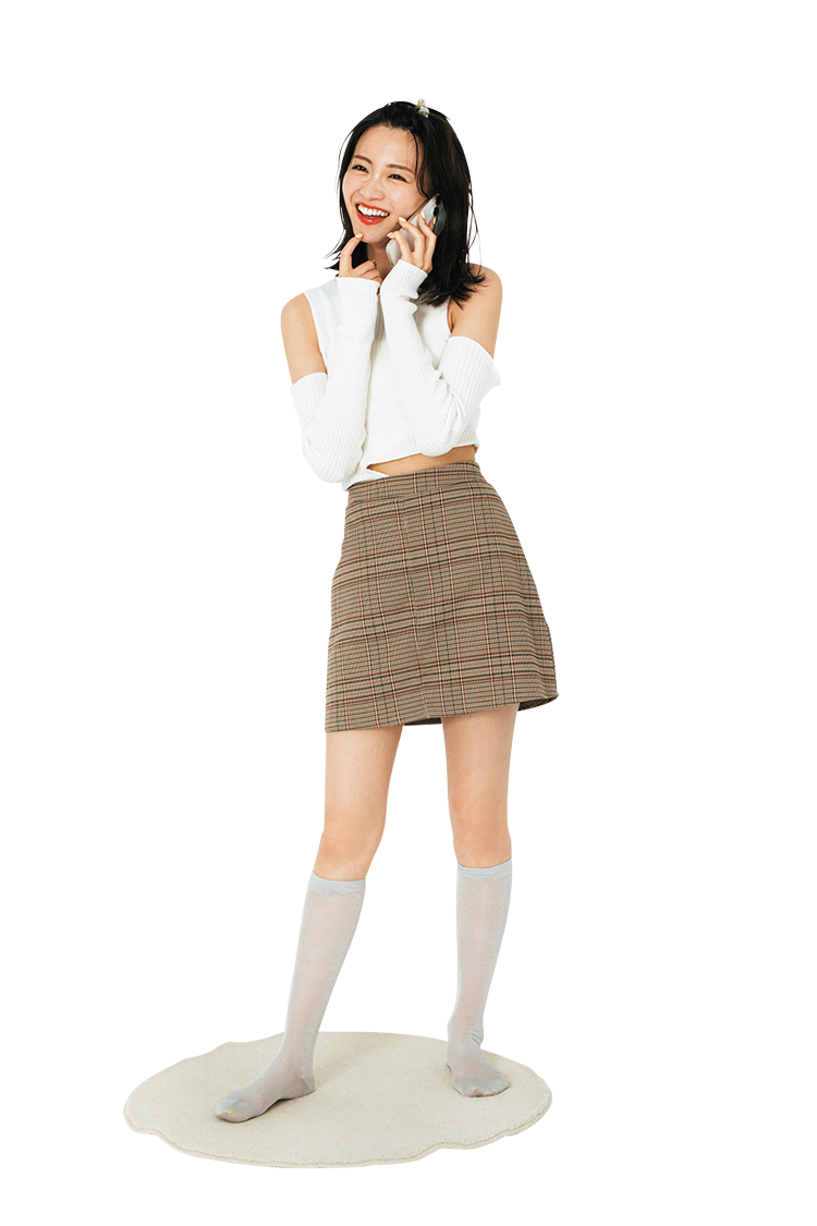 2Wayトップスは着回し。ブラウンチェックミニスカート 5,500円/ACYM クリップ(2個セット) 550円/アネモネ(サンポークリエイト) 靴下 1,320円/靴下屋(Tabio) Coordinate5 秋っぽ華奢見えコーデ