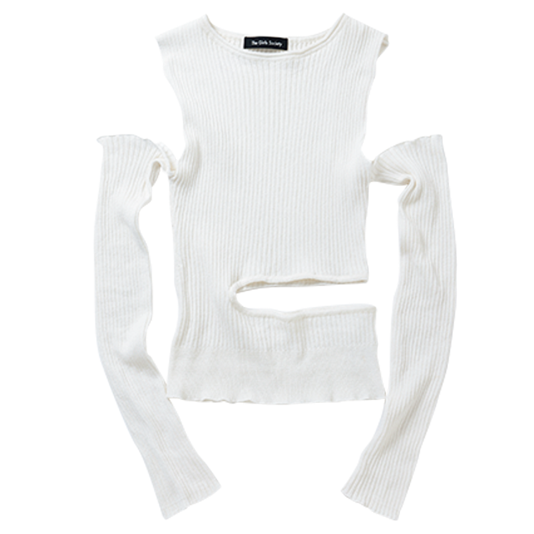 白だけど脱ブナン!お腹のカットアウトデザインで肌見せして韓国アイドルになれちゃう1枚。とりはずし可能なアームウォーマーつき。