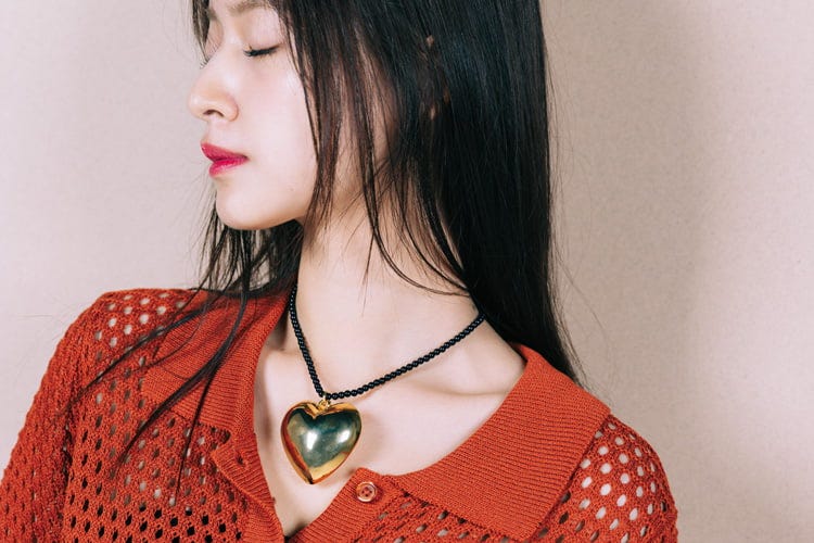 大きなハートモチーフもゴールド×黒の配色で高級感はしっかりキープ。存在感のあるネックレスで視線を集めて♡