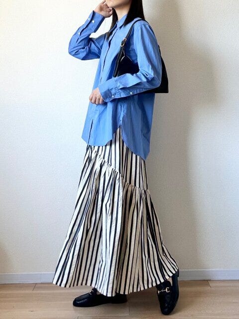 ストライプスカートと合わせてすらっと上品に。