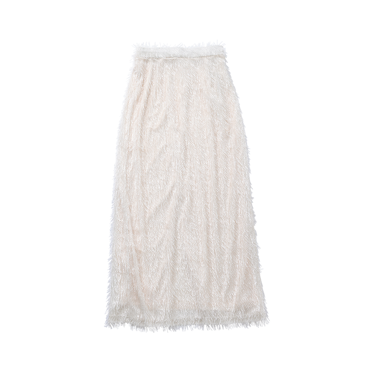 シルバーグリッターフェザーニット 14,300円/The Girls Society Item2フリンジロングスカート体型カバー◎なロンスカ。Tシャツとあわせるだけでもこなれちゃうすぐれもの。